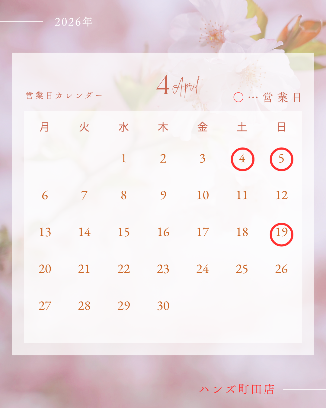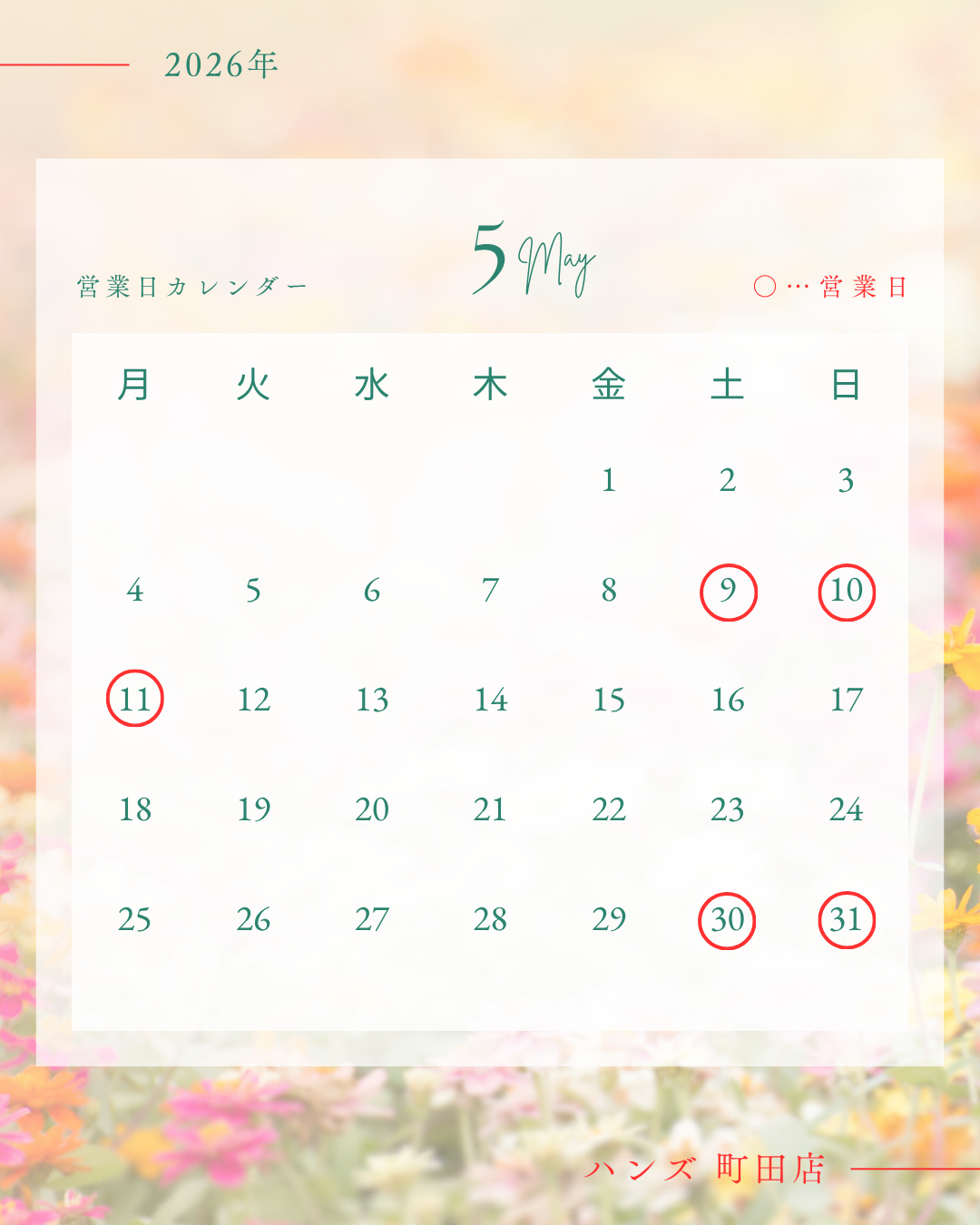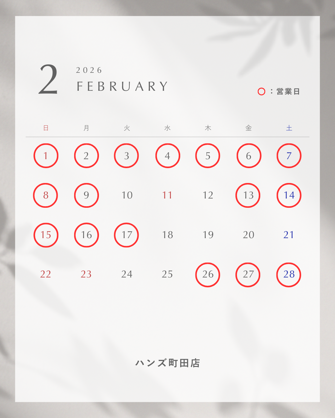 ※○印が営業日です。